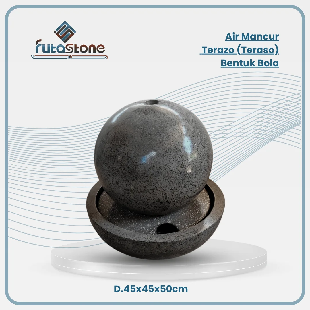 Air mancur terazo (teraso) bentuk bola dengan diameter 45 cm adalah solusi dekorasi taman dan ruang terbuka yang memadukan unsur estetika, ketenangan, dan nuansa modern.